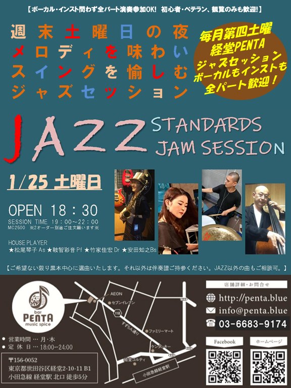 2025/1/25(土) 経堂Penta ジャズスタンダードジャムセッション