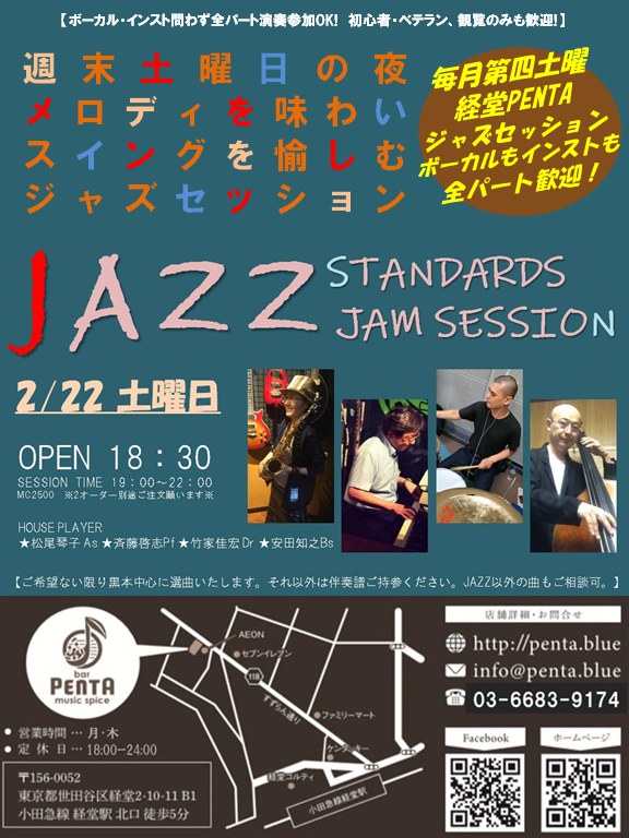 2025/2/22(土) 経堂Penta ジャズスタンダードジャムセッション