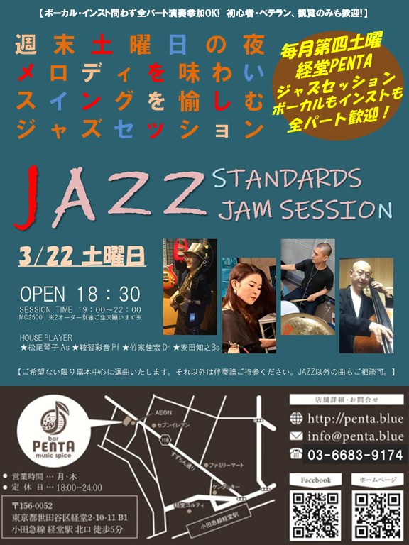 2025/3/22(土) 経堂Penta ジャズスタンダードジャムセッション